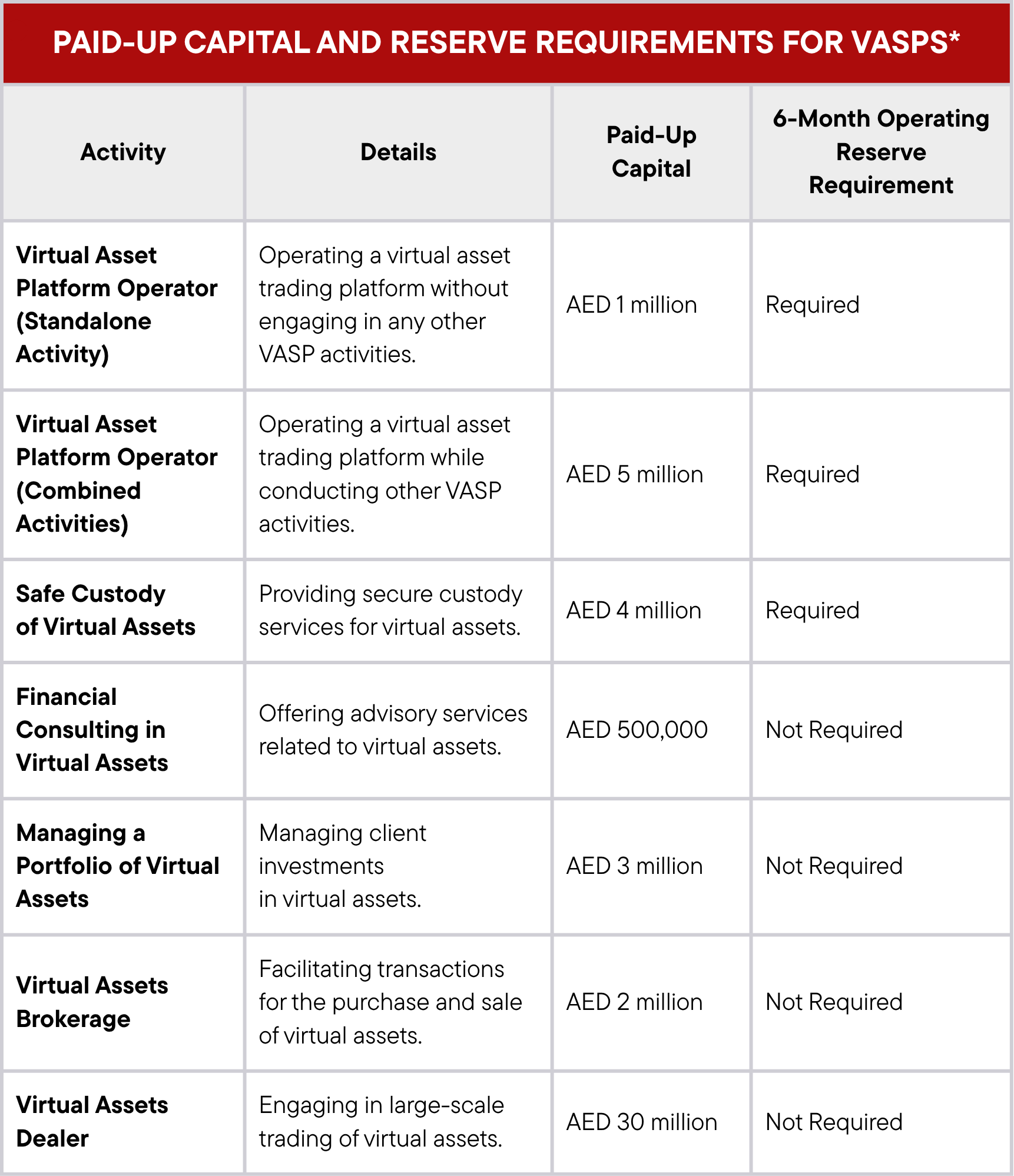 *The SCA released a draft regulatory framework for Virtual Assets, which was open for industry feedback until 1 Sep 2025. The new framework is expected to be finalized and issued by early 2026.