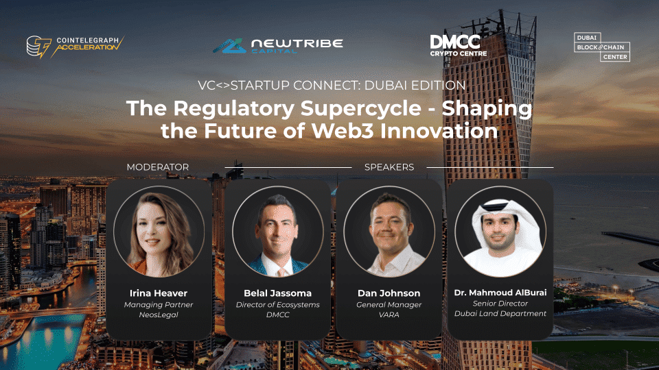We’re joining forces with Cointelegraph Accelerator, DMCC, Dubai Blockchain Center, NewTribe Capital and Peanut Trade to bring together VCs, builders, and bold early-stage founders.